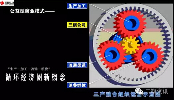 三旗公司的商业模式,属于“公益型商业模式”。从事三产融合的主要动机和出发点不再是以谋求利益为最大化为最高目标,而是以系统永续运行为愿景,成员普惠共享为目的。为生产型企业找渠道和投资,为流通性渠道找产品与顾客,为红旗手会员找优惠和商机,透过平台功能为所有会员谋取最大最持久最体面的福利,让参与者创富,让创造者辉煌,让奉献者体面!