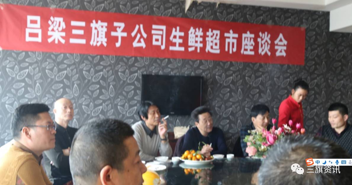 12月4日下午,柴董、祁总考察企业后,和文水县人大主任郭竹鹏一起参加了“吕梁三旗子公司生鲜超市座谈会”。会上,郭主任与柴董全面探讨了三旗公司“三千万工程”在市场运行中所能发挥的积极作用。
